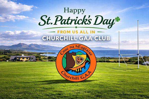 From everyone at Churchill GAA Club, we want to wish all our players, coaches, volunteers, supporters and friends, both near and far, a very happy and enjoyable St. Patrick’s Day.